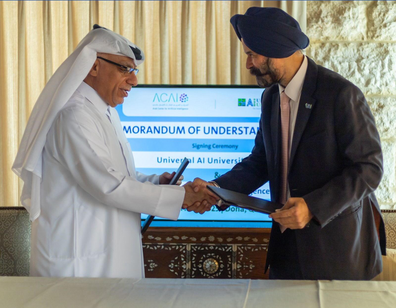 قام المركز العربي للذكاء الاصطناعي (ACAI) في قطر، بتوقيع مذكرة تفاهم مع جامعة يونيفرسال للذكاء الاصطناعي (UAI)، المؤسسة الهندية الرائدة في التعليم العالي المتخصص بالذكاء الاصطناعي والتقنيات الناشئة. وذلك في خطوة استراتيجية تهدف إلى تسريع وتيرة التقدم في مجال الذكاء الاصطناعي بقطر والمنطقة، وتعزيز التعليم والبحث والابتكار في هذا المجال المتنامي الاستخدامات.